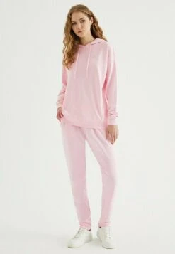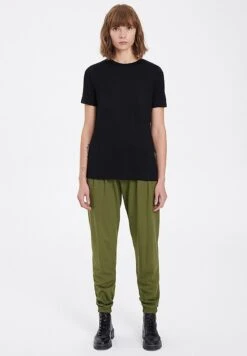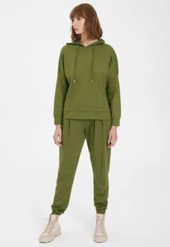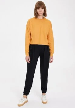 EffenSweatstofTaille met trekkoordElastische taille/zoomGeribd ceintuurtjePaspelzakZakken aan de zijkantLabel borduurwerkOp staal nadenVoelt zacht aan