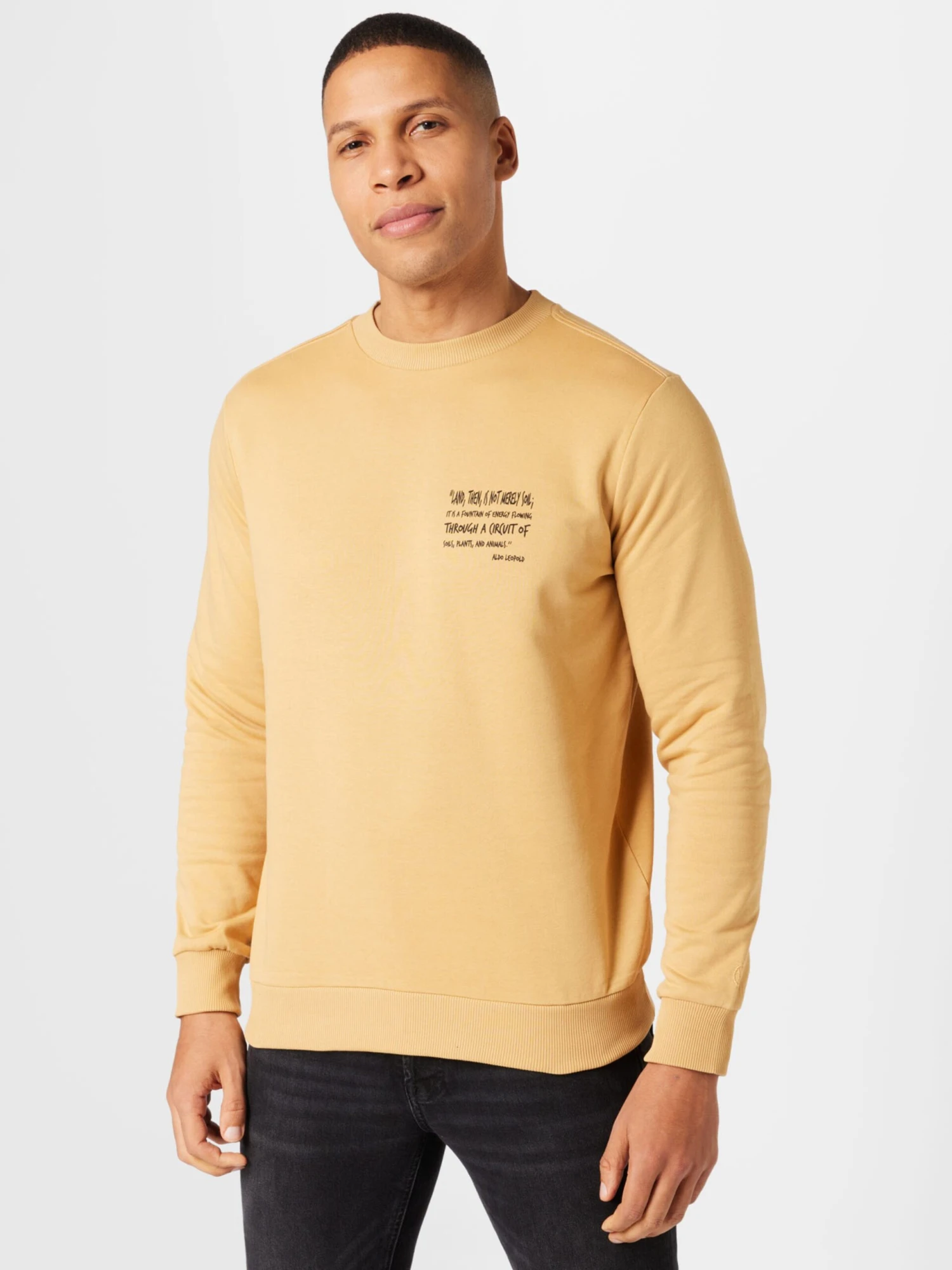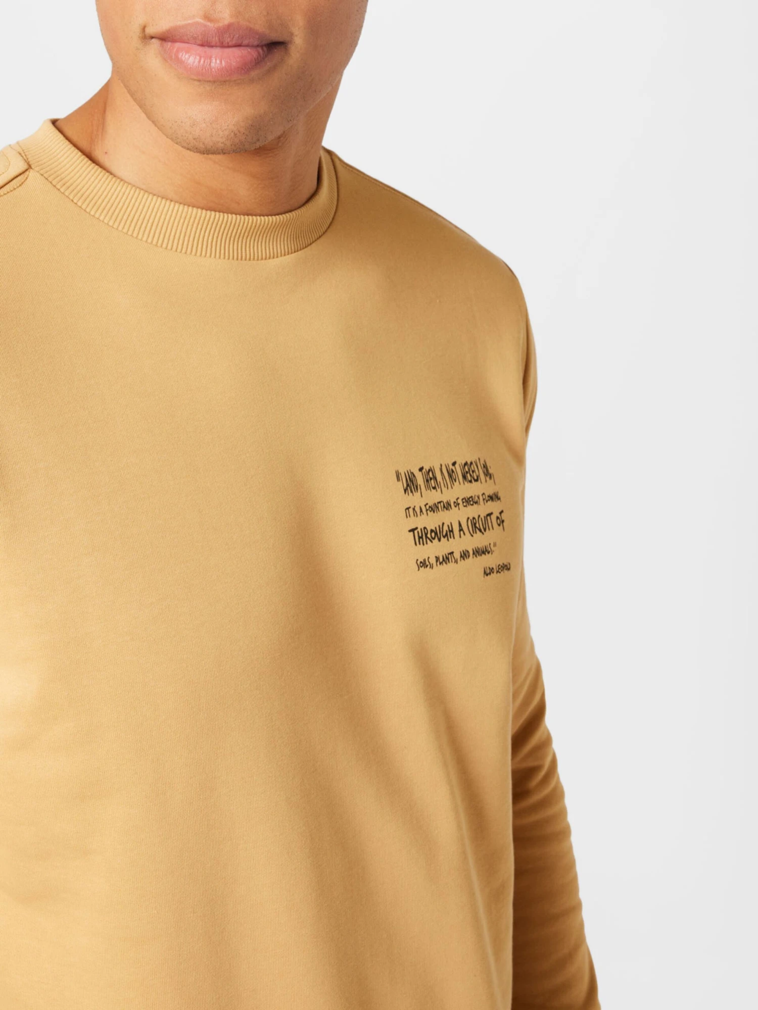 MottoprintSweatstofRonde halsGeribbelde kraagRechte zoomGeribd ceintuurtjeOp staal nadenVoelt zacht aan